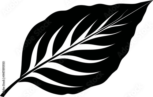 Obraz premium Black and white silhouette of a leaf with intricate patterns, art...