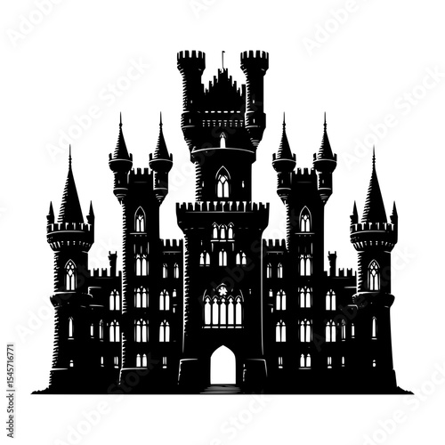 © Alam, Obraz premium Black and white silhouette of a majestic castle