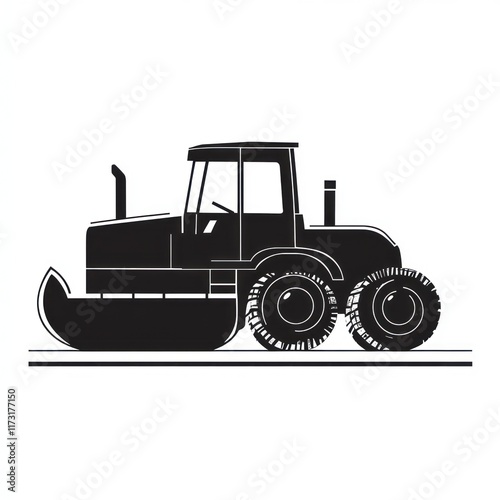 © lestari, Fototapeta premium Black and White Silhouette of a Powerful Tractor