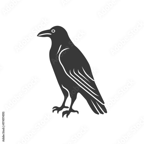 © NikahGeh, Obraz premium Black and White Silhouette of a Raven Standing on One Leg