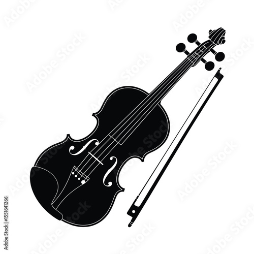 Obraz premium Black and White Silhouette of a Violin with Bow Isolated on White