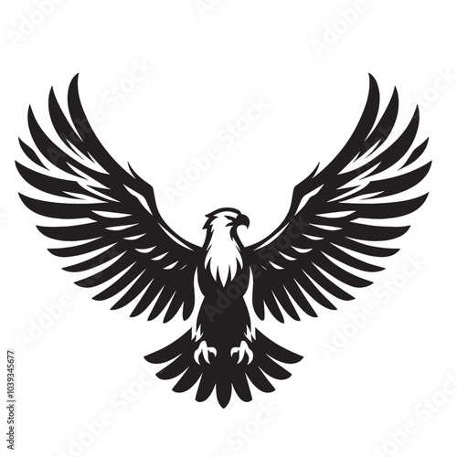 Obraz premium Black and white silhouette of an eagle with its wings spread.