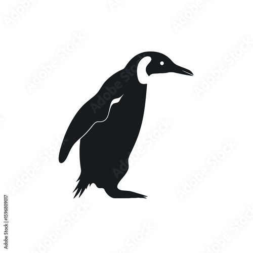 Naklejka premium Black and white silhouette of an emperor penguin standing upright and facing...