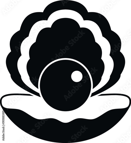© anatolir, Fototapeta premium Black and white silhouette of an opened clam showing a precious pearl