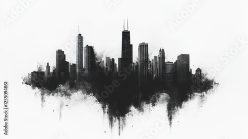 Fototapeta premium Black and white silhouette of the Chicago skyline with a watercolor effect.