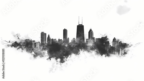 Fototapeta premium Black and white silhouette of the chicago skyline with a watercolor effect....