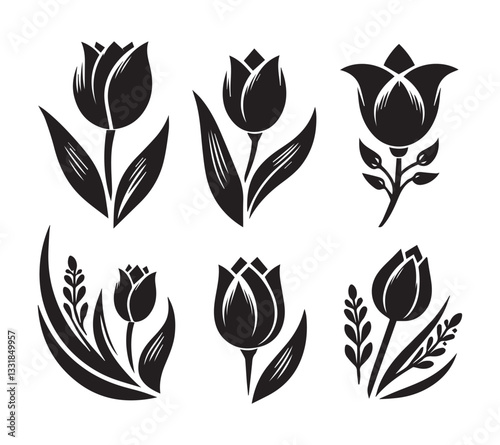 Fototapeta premium Black and White Silhouette set Tulip Designs