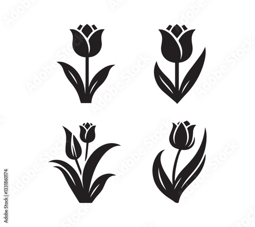 Fototapeta premium Black and White Silhouette set Tulip Designs