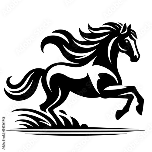 © Blakez, Obraz premium Black and white silhouette vector of a horse on white background