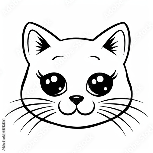 Obraz premium Black and white simple outline cats head emoticon pictures