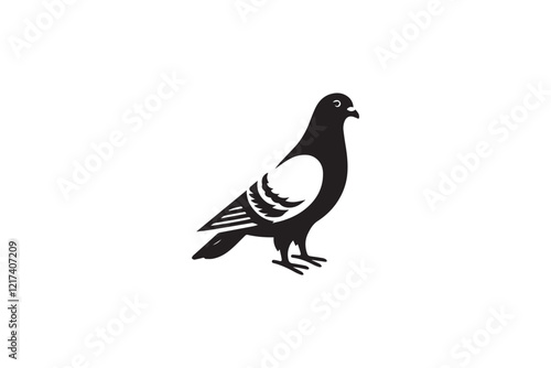 © mdlikhonislam2x, Obraz premium black and white simple pigeon vector silhouette