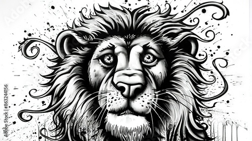 © Anna, Obraz premium Black-and-white sketch of a lion's head with a splash of color