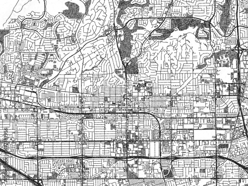 © W&S Stock, Fototapeta premium Black and white sketch-style map of Fullerton, California, designed digitally with fine details and bold textures.