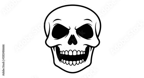 Fototapeta premium Black and white skull illustration with smiling expression