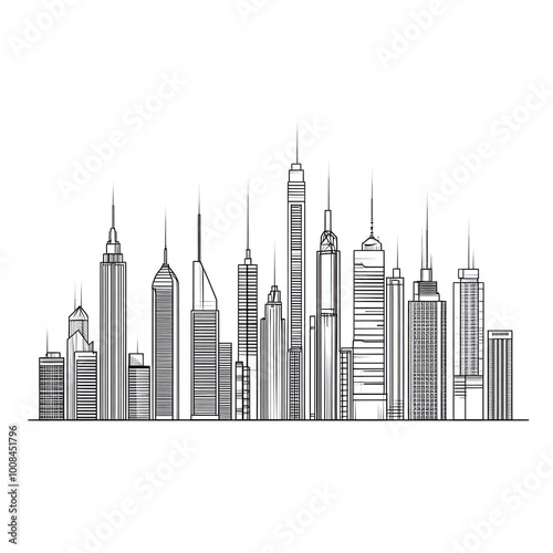 Obraz premium Black and white skyline illustration featuring colorful tall buildings...