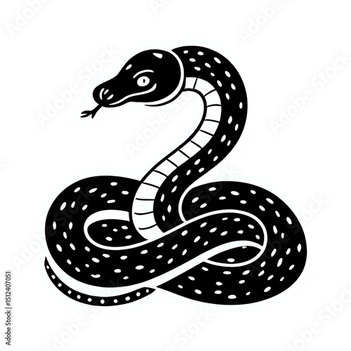 Fototapeta premium Black and white snake illustration drawing with spots vector image design on transparent background