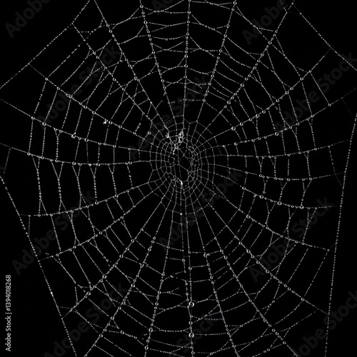Fototapeta premium black and white spider web with dew drops abstract nature background