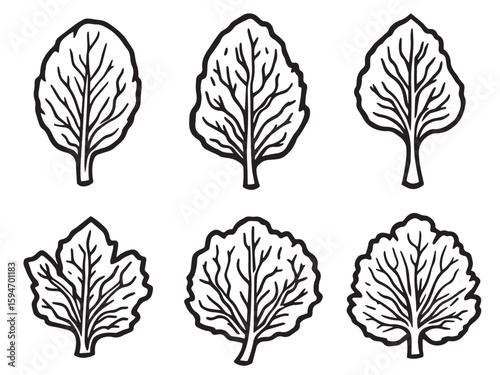 © Nazma Begum, Obraz premium Black and white spinach drawing line art