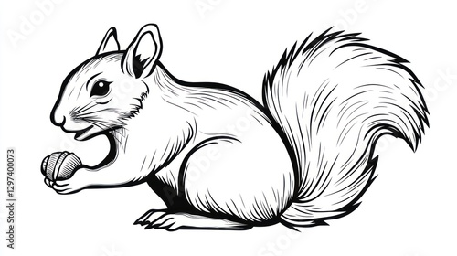 © lestari, Fototapeta premium Black and white squirrel holding nut, stylized graphic