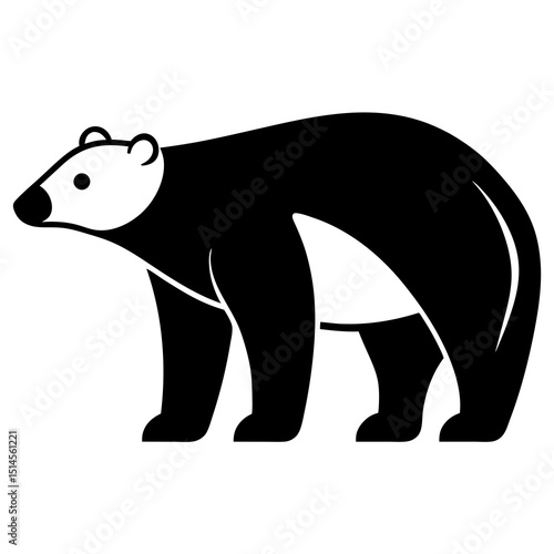 © CHANCHAL, Obraz premium Black and White Standing Bear Silhouette - Simple Wildlife Mammal Icon