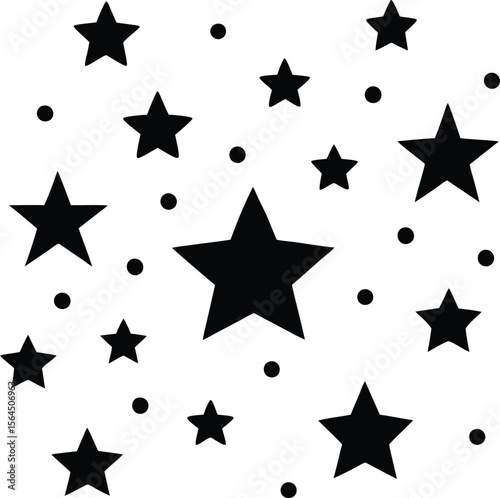 Obraz premium Black and White Star Pattern Background, Celestial Design, Night Sky, Vector Illustration