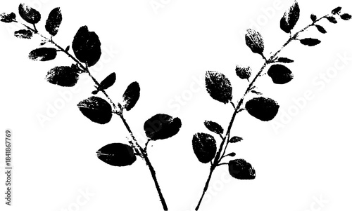 © Artem, Fototapeta premium Black and white stencil illustration of interwoven branches with leaves for artistic design