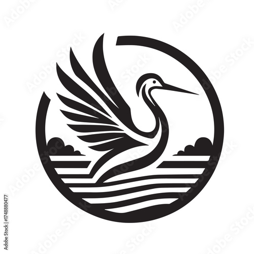 © i'uLpotra, Obraz premium black and white stork logo vector