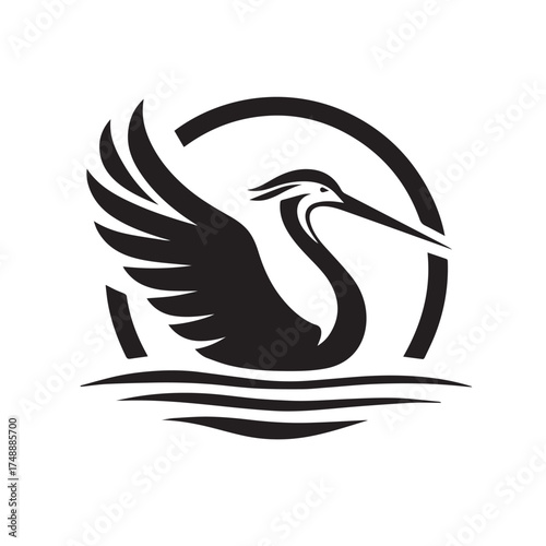 © i'uLpotra, Obraz premium black and white stork logo vector