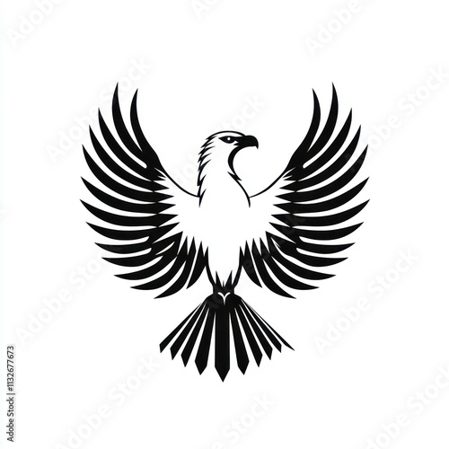 © lestari, Obraz premium Black and white stylized eagle with wings spread.