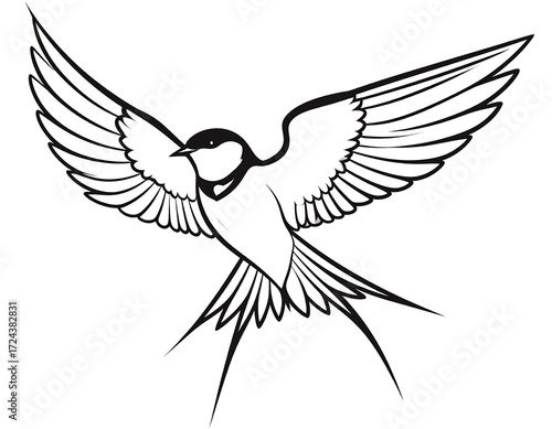 © Wedus, Naklejka premium Black and white stylized illustration of a bird in flight