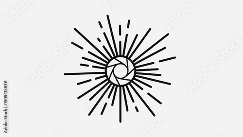 Obraz premium Black and white stylized illustration, spiral center radiating lines on white background