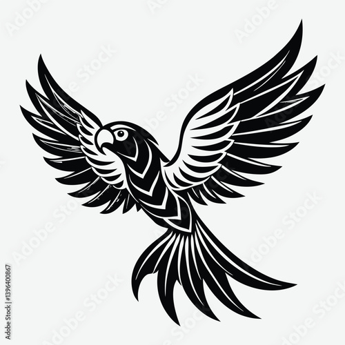 © Naim, Fototapeta premium Black and white stylized parrot in flight