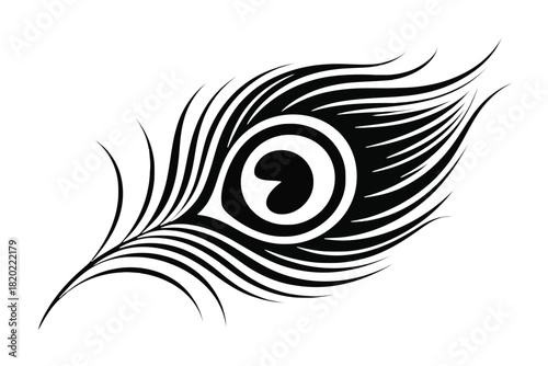 Fototapeta premium Black and white stylized peacock feather with a prominent eye design vector...