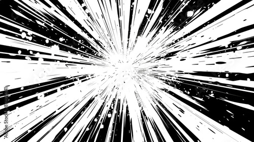 © Take ME, Fototapeta premium Black and white sunburst abstract on white and transparent background. Ray burst, explosion, comic big bang. Superhero action speed frame. Radial lines. Monochrome design element. Textured backdrop.