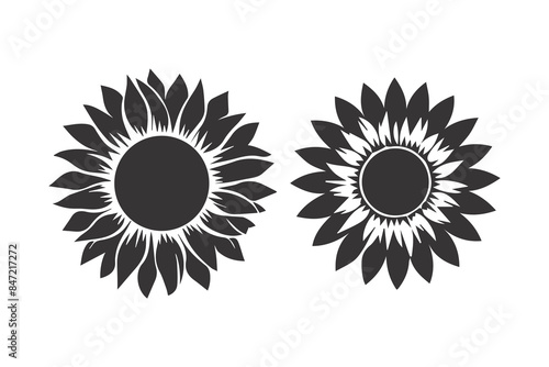 © Ayrin29, Fototapeta premium Black and white sunflower Beautiful sunflower flowers. Vector illustration