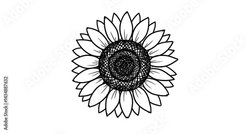 Fototapeta premium Black and White Sunflower Illustration with Detailed Seed Pattern Design