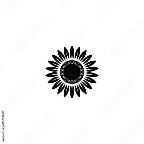 Fototapeta premium Black and White Sunflower Silhouette with Intricate Center Design, Art Style