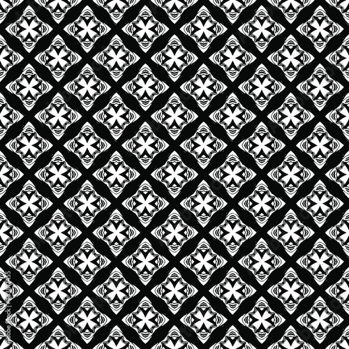 © Jozsef, Fototapeta premium Black and white surface pattern texture. Bw ornamental graphic design. Mosaic ornaments. Pattern template. Vector illustration.