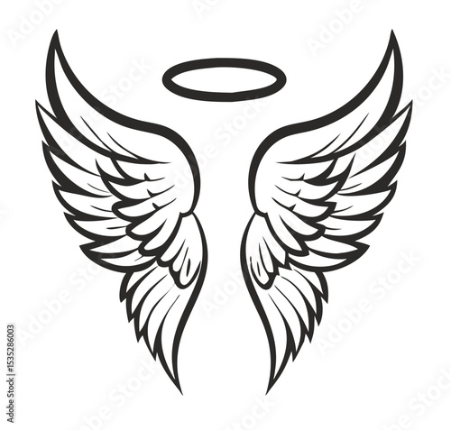 © Rolandas, Obraz premium Black and white svg vector angel wings, valentine's day icon
