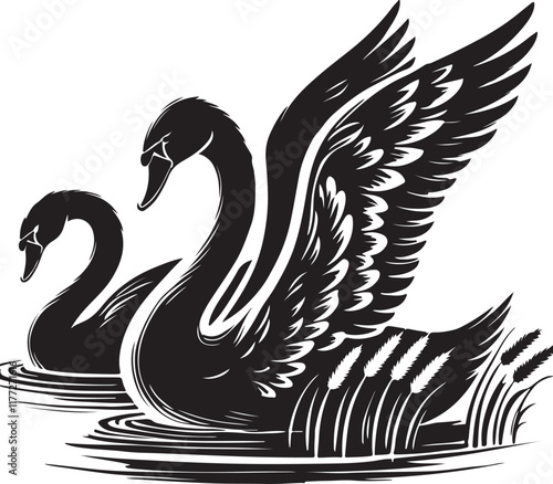 © SATHI, Fototapeta premium black and white swan