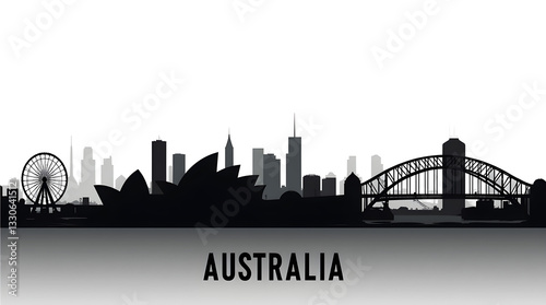 Naklejka premium Black and White Sydney Australia Skyline Silhouette Cityscape Photo Iconic...
