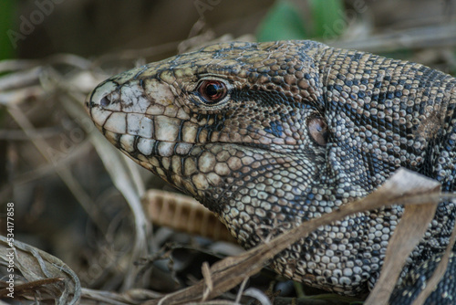 Fototapeta premium Black-and-white Tegu in the grassfield