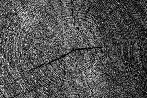 Fototapeta premium Black and white texture of sawn logs with growth rings. Natural background.
