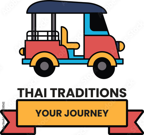© toonsteb, Obraz premium black and white Thai tradition vehicle with a ribbon