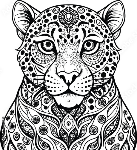 © graphicmount, Obraz premium Black and white tiger coloring Page. Generative AI