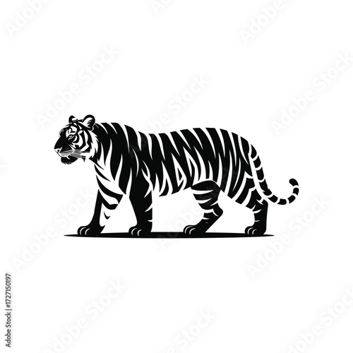 © MSTSHARMIN, Naklejka premium Black and White Tiger Silhouette Illustration