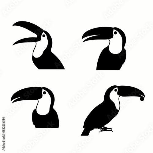 © Mahmud, Fototapeta premium Black and white toucan bird silhouettes set, tropical jungle animal vector illustrations for nature and wildlife designs.