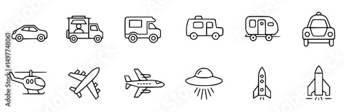Fototapeta premium Black and white transportation icons set