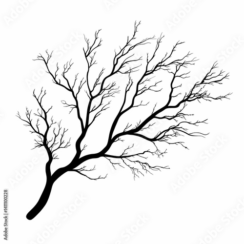 © chamath, Obraz premium Black and White Tree Branch Silhouette. Minimalistic Abstract Nature Art for Eco-Friendly Design