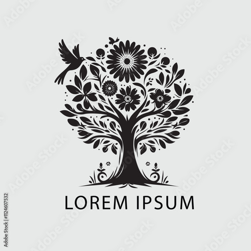 Fototapeta premium Black and white tree silhouette logo design